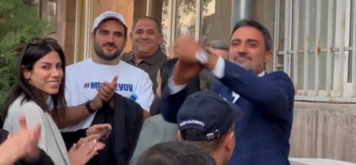 «Սա՛մ-վե՛լ, Սա՛մ-վե՛լ»․ Կարապետյանի կինը, զավակներն ու աջակիցները դատարանի բակում են