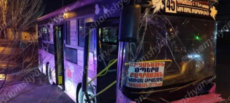 Այսօր՝ դեկտեմբերի 25-ին, ավտովթար է տեղի ունեցել Երևանում: Ժամը 07:20-ի սահմաններում Թևոսյան-Աշոտ Հովհաննիսյան փողոցների խաչմերուկում բախվել են Երևանի քաղաքապետարանի հաշվեկշռում հաշվառված թիվ 45 երթուղին սպասարկող ավտոբուսն