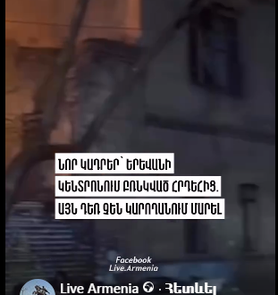 Նոր կադրեր՝ Երևանի կենտրոնում բռնկված հրդեհից. այն դեռ չեն կարողանում մարել Տեսանյութ