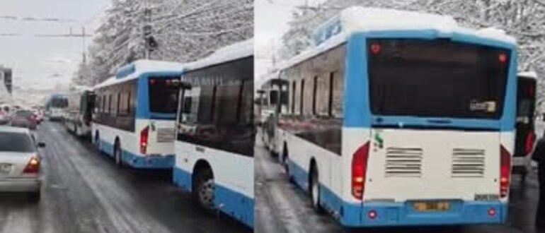 Լրագրող Հրաչ Մկրտչյանը տեսանյութ է տարածել ֆեյսբուքյան իր էջում՝ կից գրառմամբ․ «Առավոտ կանուխ․ Գայի պողոտա․ ճանապարհները հայելի են․ ավտոբուսները ստիպված կանգնել են, մարդիկ կանգառներում են մնացել»։