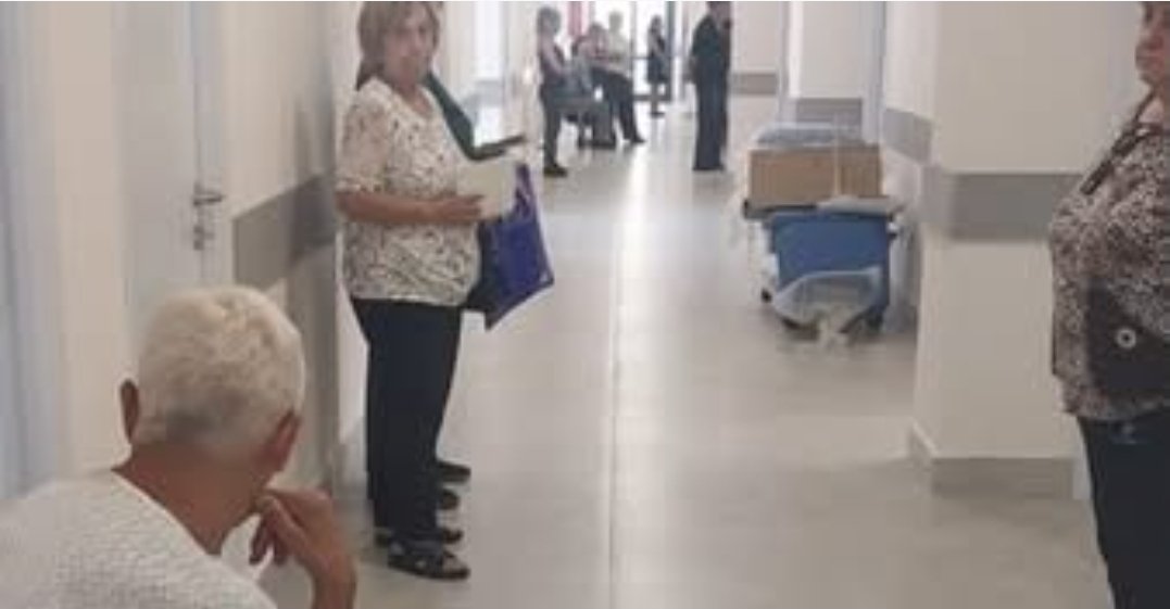 Ու սա հիվանդների սպասելու համար պայմաններն են։ Բոլորը ոտքի վրա կանգնած ժամերով սպասում են։ Ազատ միջանցքներում, ընդարձակ ընդունարանում ՄԵԿ ՀԱՏԻԿ նստարան, աթոռ չկա։ Հատուկ մարդասիրական միջամտությամբ երկու աթոռ ա հանված սենյակներից, որոնց նստած են երկու ծեր։