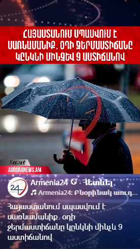Հայաստանում սպшսվում է սառնшմանիք․ օդի ջերմшստիճանը կընկնի մինչև 9 աստիճանով Published by: 28.10.2025Category: ՀայաստանAuthor: admin Հայաստանում սպասվում է սառնամանիք․ օդի ջերմաստիճանը կընկնի մինչև 9 աստիճանով Տեսանյութ