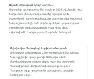 2 կենդանակերպի նշաններ, որոնք 2026֊ին աննախադեպ հաջողություն կունենան Published by: 30.12.2025Category: ՀորոսկոպAuthor: admin 2 կենֆանակերպի նշաններ, որոնք 2026-ին աննախադեպ հաջողություն կունենան https://www.facebook.com/share/p/16bQTzMitK/