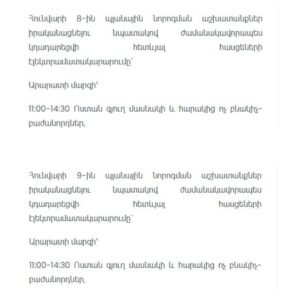 Պլանային անջատումներ․ որ հասցեներում հունվարին լույս չի լինի Published by: 01.01.2026Category: ՀայաստանAuthor: admin Տարվա առաջին օրերի պլանային անջատումներ. ստուգեք՝ ձեր մասնակցությունը https://www.facebook.com/share/p/1AbVMKyrUg/