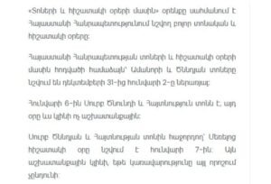 Աշխատանքային տարին կսկսվի՞ հունվարի 3-ից Published by: 01.01.2026Category: ՀայաստանAuthor: admin Աշխատանքային տարին կսկսվի՞ հունվարի 3-ից https://www.facebook.com/share/p/1BkgbsHBYb/