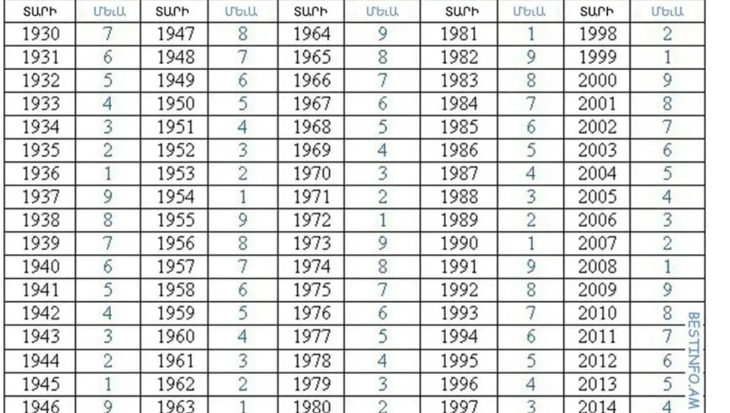 Բուդայականները համարում եմ, որ հոգին կարող է ծնվել 9 անգամ։ Այսինքն այդքան անգամ նա աշխարհ է գալիս մարդկային կերպարանքով։ Հերթական մարմնավորման բնութագիրը Մեւան է (թարգմ․ նշան կամ խալ)։ Մեւան ցույց է տալիս՝ քանի անգամ եք դուք հայտնվել այս աշխարհում, ձեզ ինչ կարմա է սպասում ու քանի կյանք է մնացել։ Ձեր Մեւան որոշելու համար նայեք այս աղյուսակը։ Ձեր ծննդյան տարվա մոտ նշված է ձեր կյանքի թիվը։ Անհատականության կարմա՝ ըստ ծննդյան թվի։Մեւա 1 Բնավորությամբ անհանգիստ է, խառնվածքով՝ հոռետես։ Հիմնականում այս անհատը հարմարվում է իրավիճակին։ Հազվադեպ է ձգտում ինչ-որ բան փոխել։ Արտաքուստ ընկերասեր է ու անկեղծ, մինչդեռ ներքուստ համառ երեխա է։ Ըստ երևույթիին տառապում է ոգելիցից կամ թմրանյութերից կախվածությունից։ Առողջությունն ավաղ, կատարյալից հեռու է։ Հաճախ մարմնի ստորին հատվածի (երիկամների, միզապարկի, արգանդի կամ սեռական օրգանների) խնդիրներ ունի։ Հակված է տրամադրության կտրուկ փոփոխությունների և ճնշվածության։ Ռոմանտիկ չէ, բայց սրությամբ սիրո պակաս է զգում։ Լարված աշխատանքը նրա համար չէ։ Հանգիստ ծրագրեր կազմելու և մտորելու կարիք ունի։ Աշխատանքը հնարաՄեւա 2 Մարդամոտ է՝ ագրեսիայի նշույլ անգամ չունի։ Հավակնոտ չէ, նախաձեռնող չէ, բայց մանրուքներում քննախույզ է։ Հիանալի կատարող է, բայց առաջնորդ չէ։ Լավագույն տարիքը 45-47 տարեկանն է։ Քաղցրասեր է, պարարտ մարմին ունի։ Կարմայի հիվադությունների թվում են մեջքի, մաշկի, աղիքների և արյան հետ կապված հիվադությունները։ Հարաբերություններում անչափ ուշադիր է պարտնյորի հանդեպ։ Ավելի շատ առաջնորդվում է զգացմունքներով, քան՝ տրամաբանությամբ։ Ո՛չ չքավոր է, ո՛չ ունևոր։ Խորհուրդ է տրվում խուսափել մոլեխաղերից։ Դրանցով տարվելը կարող է մահվան ելքով (սպանությամբ, ինքնասպանությամբ կամ բռնությամբ) ավարտվել։ Մասնագիտությունը կապված է հասարակության, բնության կամ դեղագործության հետ։Մեւա 3 Շուտ է հասունանում։ Բնավորությամբ անկախ է, միշտ երիտասարդ է ու լավատես։ Դրական դատողություն ունի, բայց անչափ համառ է և անհամբեր։ Դժվար է մերվում հանգամանքների հետ։ Լավագույն տարիքը 34-38 տարեկանն է։ Օրվա հոգսով է ապրում։ Բազմաթիվ սխալներ ու բացթողումներ թույլ տալով՝ հմտություններ է ձեռք բերում։ Լավ մարմնակազմություն ունի, ուժեղ է ու գործունյա, բայց թույլ նրբբաններ ունի և նյարդայնացնող խնդիրներ։ Հակված է կախվածությունների, հատկապես՝ թմրանյութերի նկատմամբ։ Եթե այդ սովորության հետ կապվեց, ուրեմն ընդմիշտ կկապվի։ Իմպուլսիվ ու շիտակ մարդ է։ Փողը ձեռքից բաց է թողնում վրիպումների պատճառով։ Խնայել բոլորովին չգտի։ Նրա համար կատարյալ են այն մասնագիտությունները, որտեղ ինքնաարտահայտման հնարավորություն կա․ ուսուցիչ, հռետոր, գրող գրող կամ երաժիշտՄեւա 4 Ընդհանուր առմամբ՝ դրական մարդ է, բայց թուլակամ է ու փոք-ինչ վախկոտ։ Բնույթով խոցվող է ու շատ բարի։ Կատարյալ տարիքը՝ 38 տարեկան։ Մարմնակզմությամբ թույլ է, ճակատը լայն է ու մեծ։ Մեծ է հավանականությունը զանազան հիվանդություններով վարակվելը։ ունի թույլ շնչառական համակարգ, աղիքնեը լավ չեն գործում։ Այս կարմայի կանայք հաճախ սեռական օրգանների հետ կապված խնդիրներ են ունենում։ Արտաքինով ներկայանալի մարդիկ են, հասունանում են վաղ տարիքից։ Նրանց համար դժվար է ամուր ու երկարատև հարաբերություններ կառուցելը։ Ընտանիք ձևավորելուԸնտանիք ձևավորելու հավանականությունը քիչ է։ Նրանց հեշտ է խաբել, կողոպտել։ Փողն ու մնացած նյութական բարիքները շատ չեն դիմանում։ Գործունեության ոլորտի առումով ավելի բարենպաստ են տոների կազմակերպման ու հասարկական կապերին առնչվող մասնագիտությունները։Մեւա 5 Երկդիմի մարդ է։ Եվ լավն