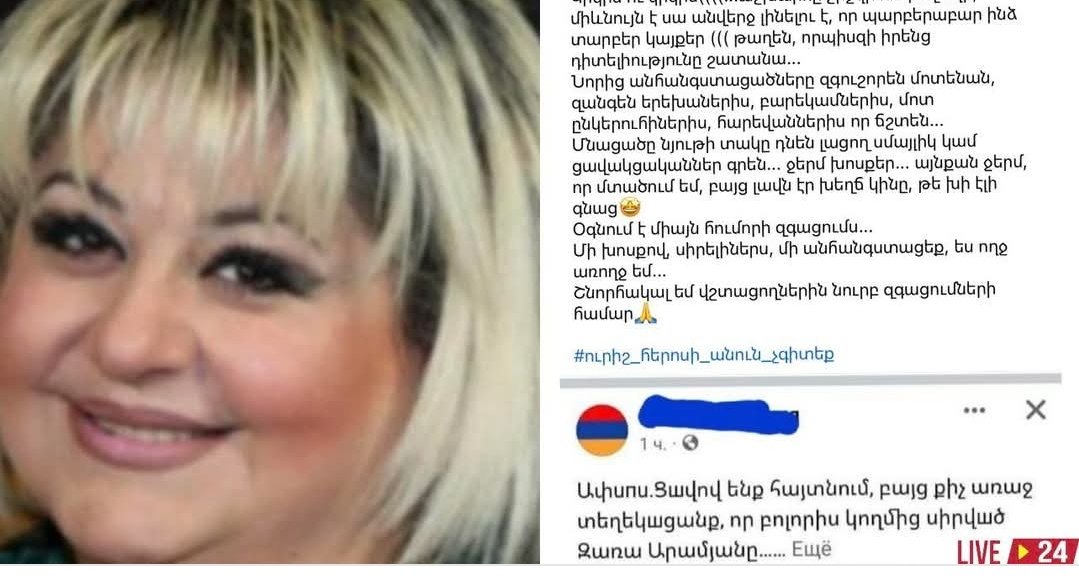 «Մի անհանգստացեք, ես ողջ եմ». ովքեր են կեղծ լուրեր տարածել Զառա Արամյանի մաhվան մասին ժամանակին