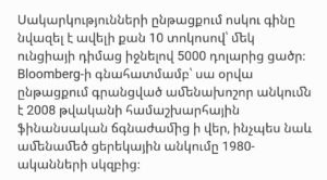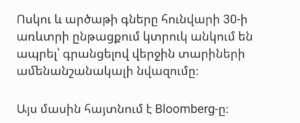 Եթե ունեք ոսկի կամ արծաթ, ապա իմացեք այս մասին․ վերջին տասնամյակների ամենախոշոր անկումը