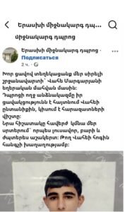 Խոր ցավով տեղեկացանք մեր սիրելի շրջանավարտի Վահե Մարգարյանի եղերական մահվան մասին: Դպրոցի ողջ անձնակազմը իր ցավակցությունն է հայտնում Վահեի ընտանիքին, կիսում է հարազատների վիշտը: Նրա հիշատակը հավերժ կմնա մեր սրտերում որպես լուսավոր, բարի և ժպտերես