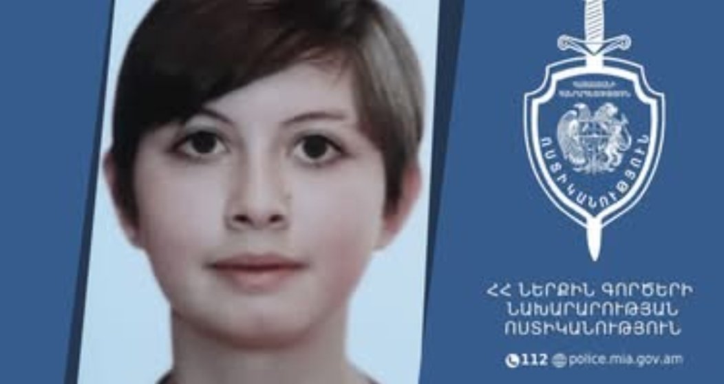 Քրեական ոստիկանության Երևան քաղաքի վարչության կողմից որպես անհետ կորած որոնվում է 2009 թվականին ծնված Հայկանուշ Խաչատրյանը։
