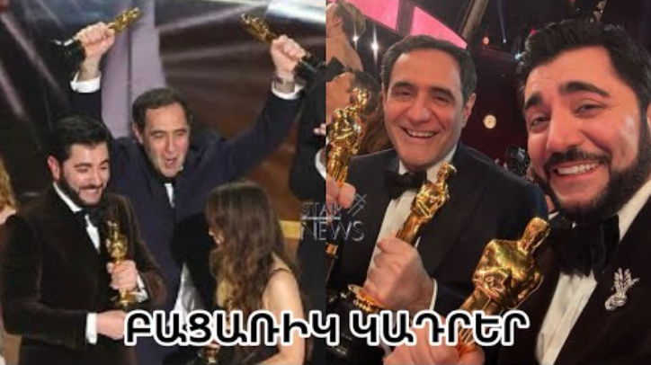 Ինչպես են Վաչե Թովմասյանն ու Կարեն Կարագուլյանը ուրախանում Օսկար մրցանակը ստանալիս. բացառիկ կադրեր