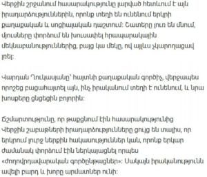 Эти заявления Вардана Гукасяна нашли отклик в разных слоях общества. Большинство людей требуют большей прозрачности, большей подотчетности в правительстве, а также санкций против всех тех чиновников, которые на протяжении многих лет использовали свое положение в собственных интересах.