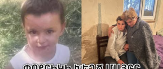 После нескольких дней поисков вчера был найден мёртвым трёхлетний Тигран, житель села Цапатах. Тело